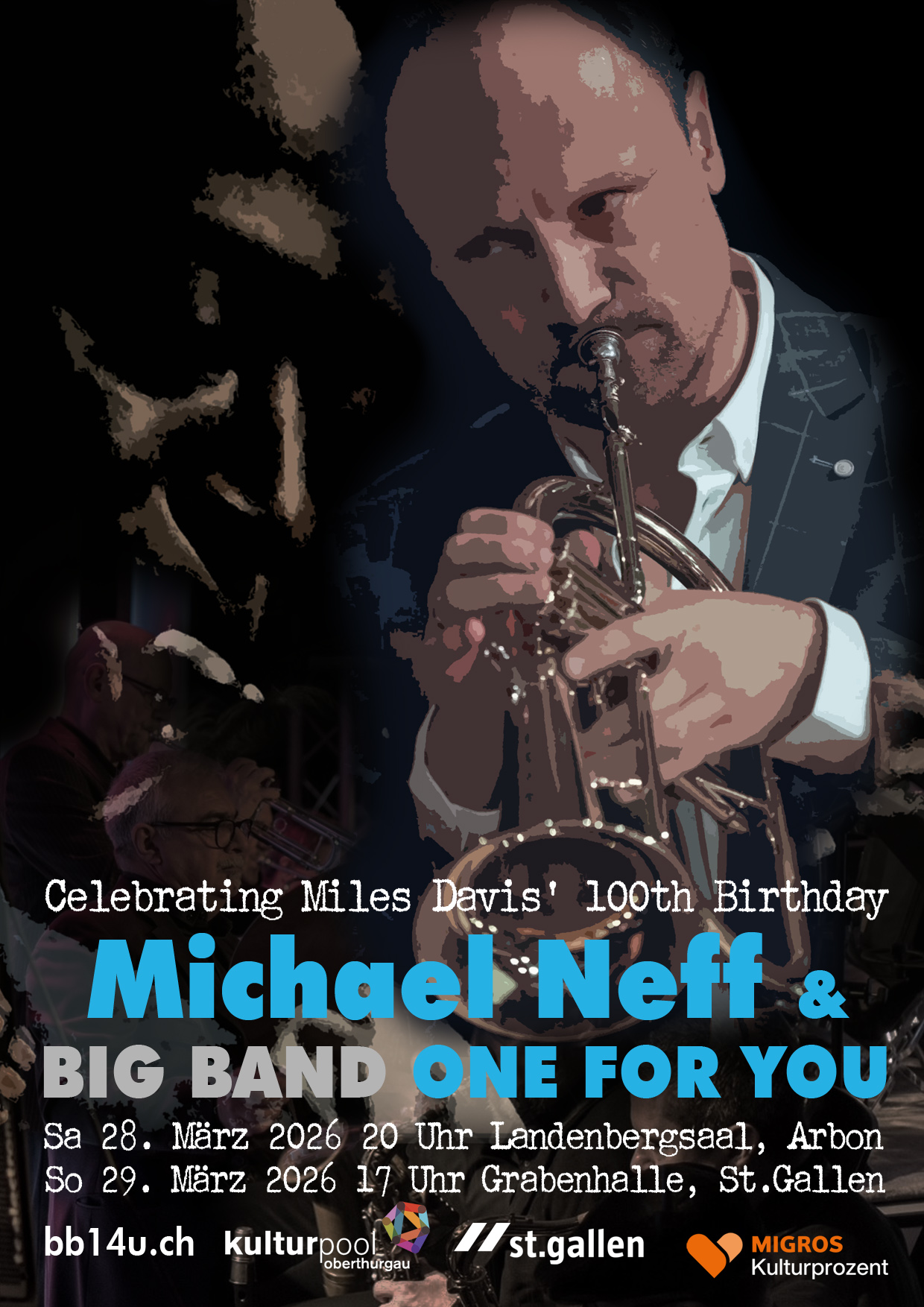 Zum 100. Geburtstag von Miles Davis präsentieren Michael Neff und die Big Band ONE FOR YOU eine Auswahl von Stücken, die in den hochproduktiven 50er und 60er Jahren die Ohren der Welt aufhorchen liessen. Die Gäste erwartet ein Abend von gleichermassen bedeutsamer wie bedeutender Musik.