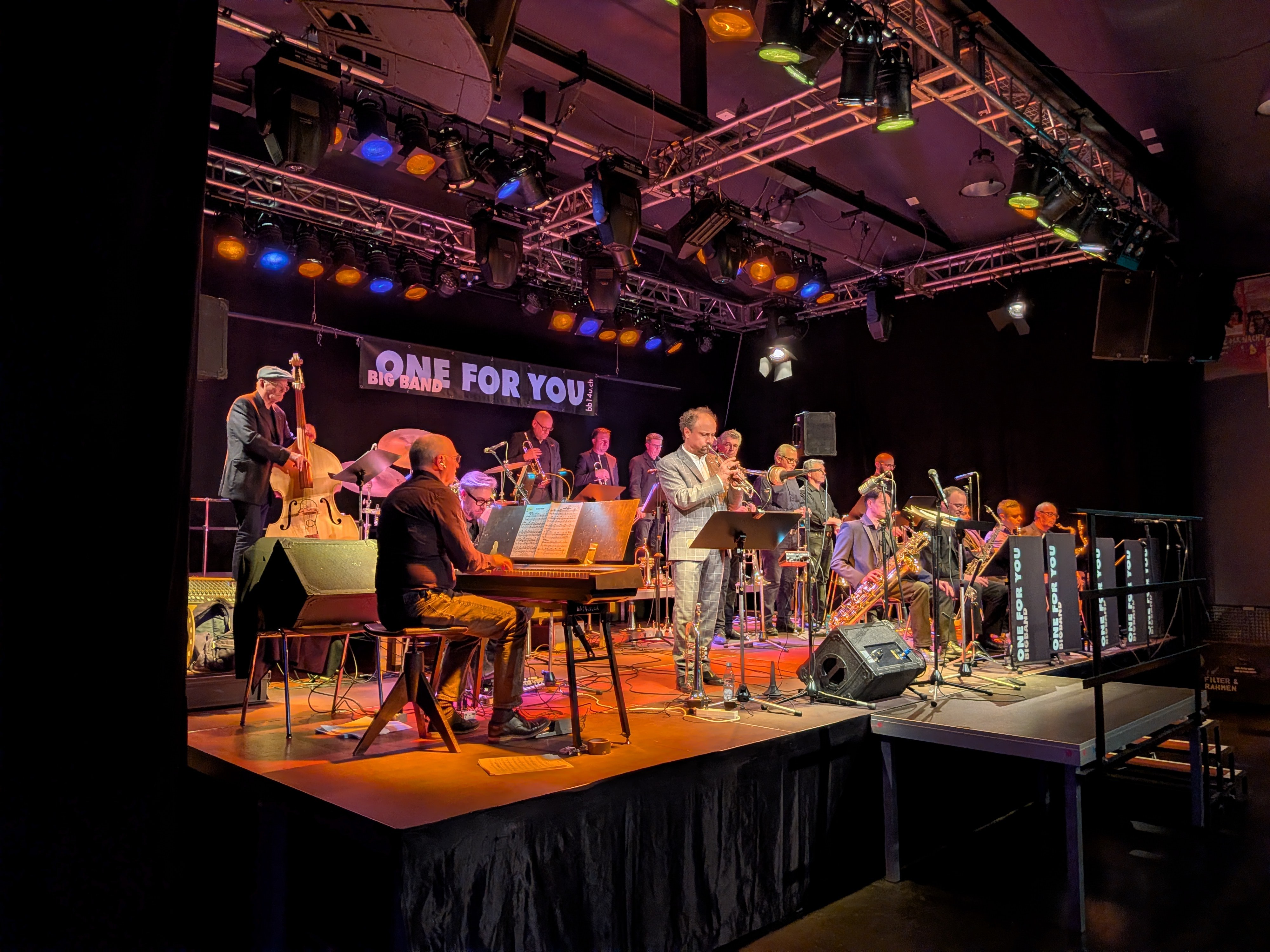 Die Big Band ONE FOR YOU, gegründet 1985, steht seit 2008 unter der Leitung des Saxophonisten Jonas Knecht.